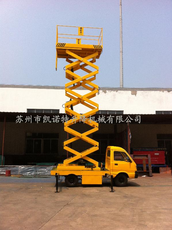 汽車載式液壓升降平臺(tái)是由升降臺(tái)和汽車配套改 裝而成的。它接取汽車引擎動(dòng)力,實(shí)現(xiàn)升降臺(tái)的升降功能。適用于大 流動(dòng)量的高空作業(yè)。